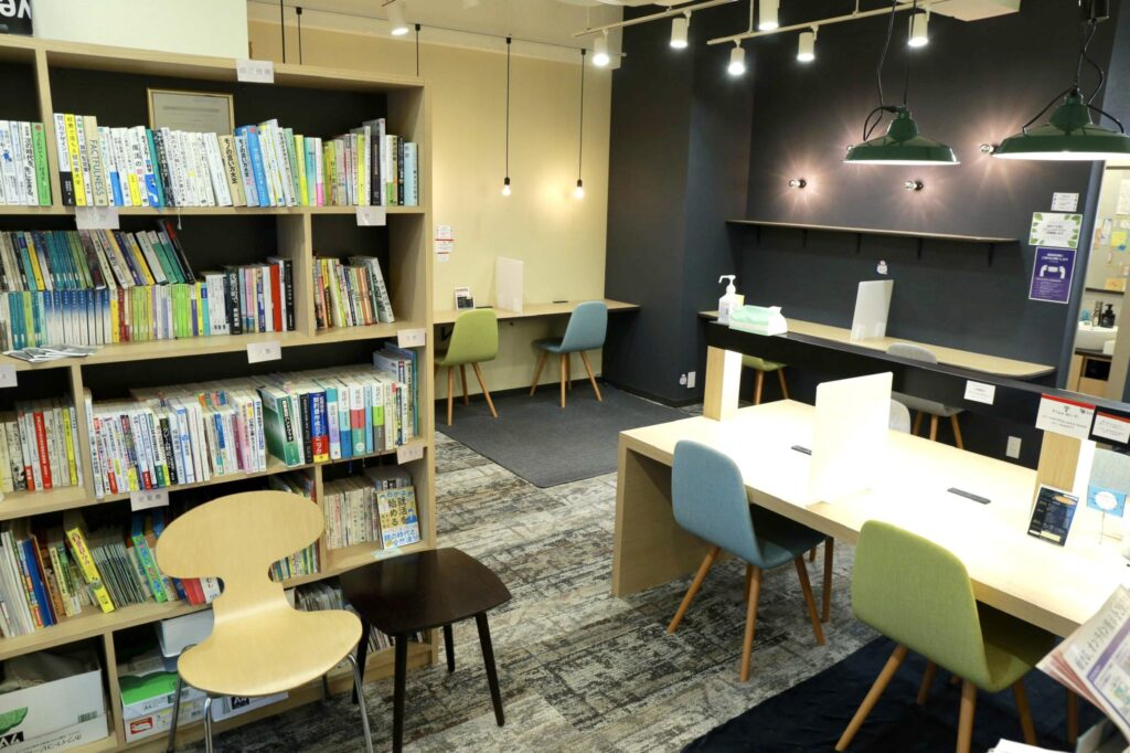 カフェは会員登録なしで1ドリンク90分滞在可能。オンライン会議や電話もOKです。